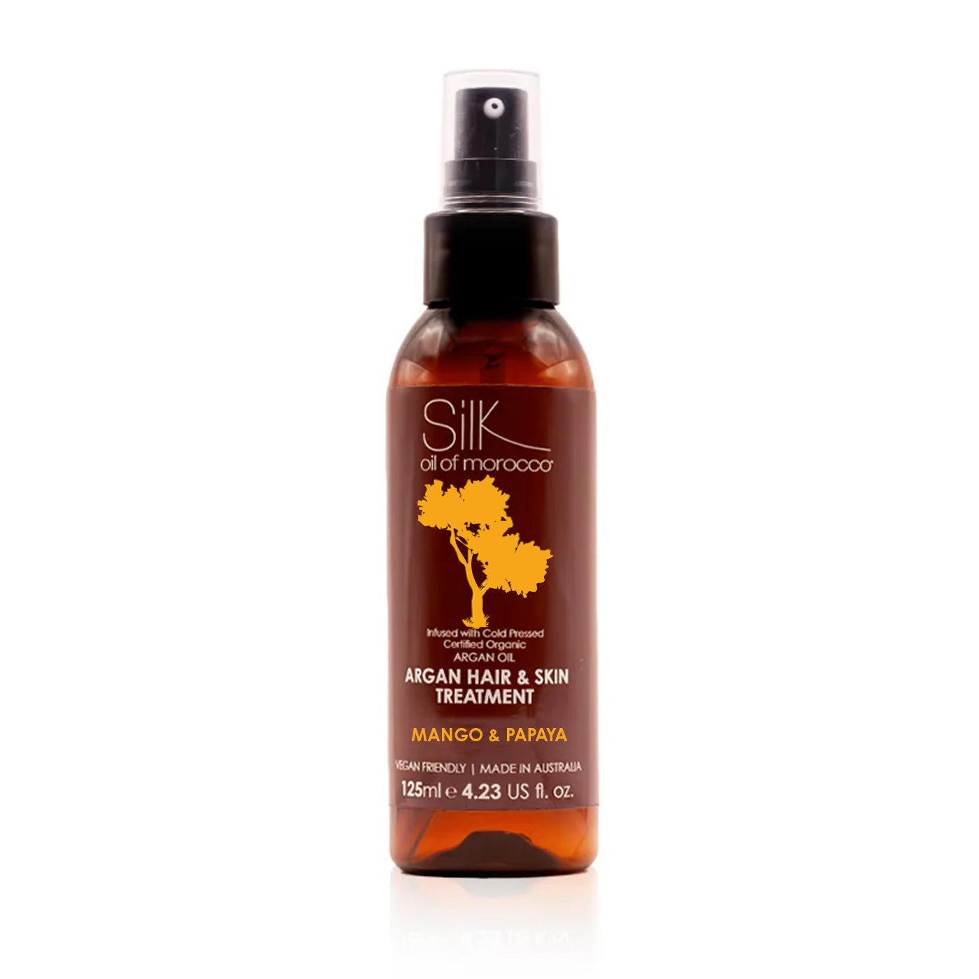 Indulge in a burst of tropical freshness with Silk Oil of Morocco’s Argan Hair & Skin Treatment in Mango & Papaya. This luxurious lightweight serum delivers instant shine, gloss, and moisture, leaving your hair and skin silky-soft, smooth, and radiant.