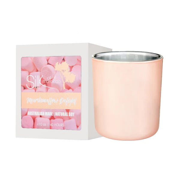 Awaken your senses and enhance any room with the Silk Marshmallow Delight Natural Soy Candle