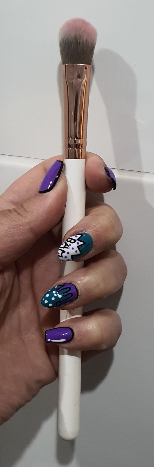I like the look and feel of these brushes. The handles aren't too small to hang onto and they are easy to blend and apply make up with. The bristles themselves feel really soft and don't irritate my skin like the animal hair ones do. They are easy to clean. I love that these are vegan friendly too. I've got the complete brush set in my make up kit. I love working with them. This brush in particular is great to apply shadow to large spaces and also blends them out well.