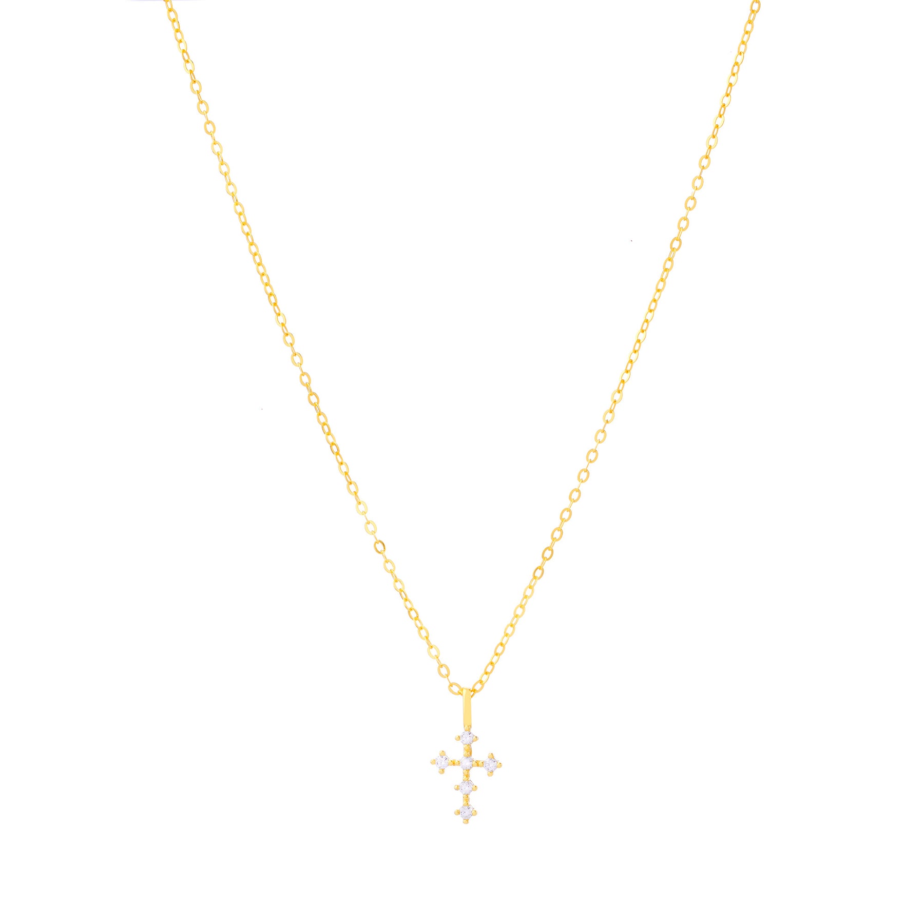 Graceful and meaningful, the Mary Necklace blends timeless elegance with delicate sparkle. Featuring a fine gold chain paired with a beautifully detailed cross adorned with shimmering stones, this piece is designed to be worn close to the heart. Refined, symbolic, and effortlessly feminine — a classic addition to any jewellery collection.