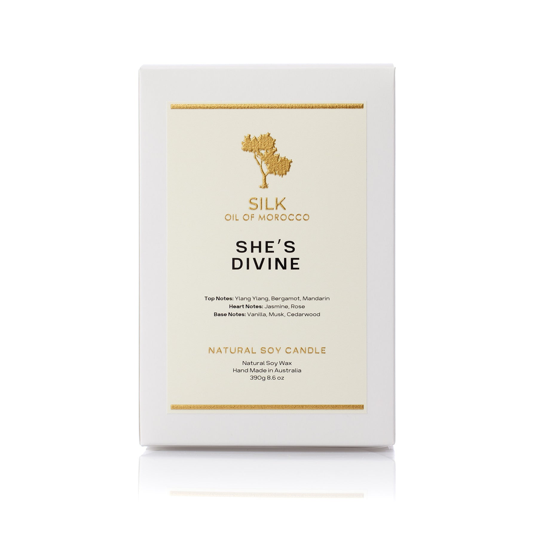 She’s Divine illuminates your space with feminine warmth. Golden blooms and luminous fruits melt into the air, leaving behind a radiant aura that feels heavenly and full of light.