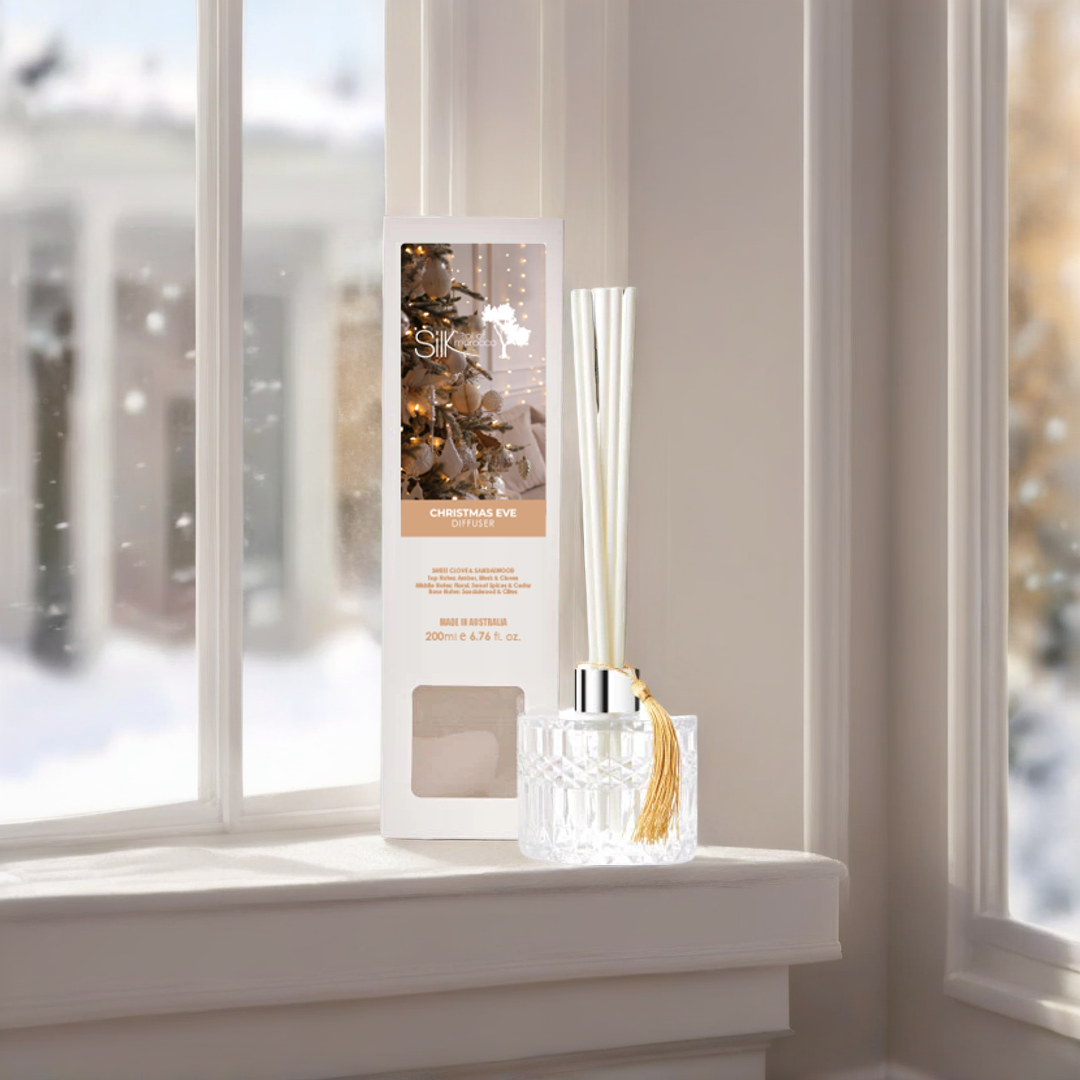 Christmas Eve Diffuser (Sweet Clove & Sandalwood) – A soothing home fragrance blending clove, amber, and sandalwood for a relaxing Christmas ambience.